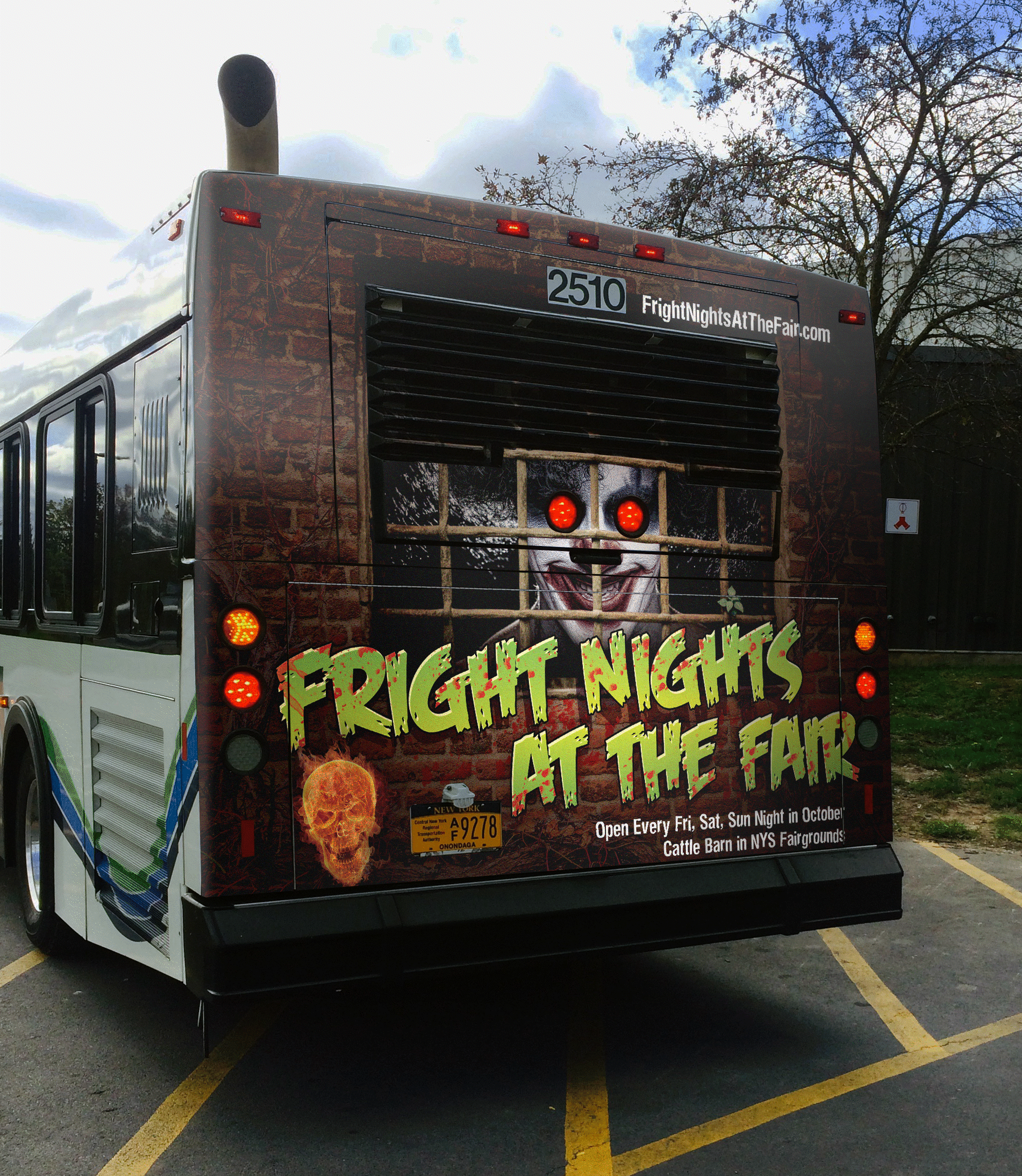 These designs were created for a haunted house in Syracuse, NY, with the goal of showcasing their four distinct attractions. The centerpiece of the campaign was a custom fullback design featuring a menacing clown.